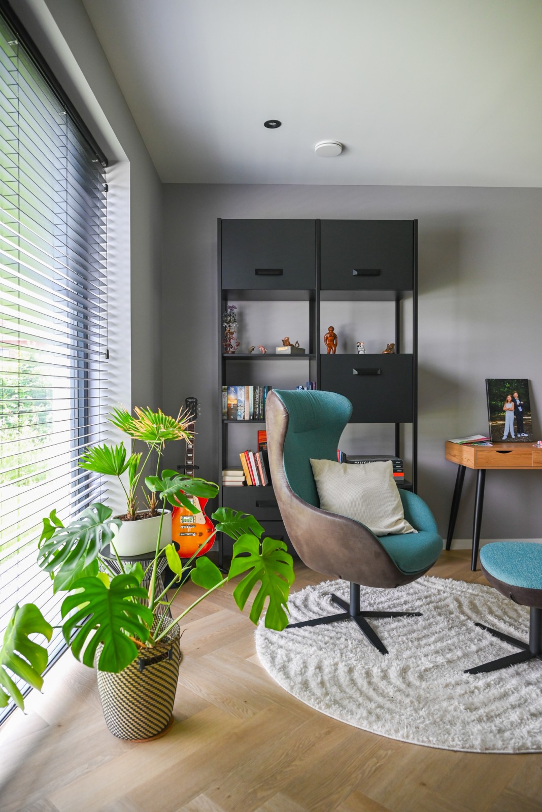 Deze moderne woning, gelegen in een doodlopende straat in Aartselaar, heeft veel natuurlijke lichtinval dankzij grote ramen.