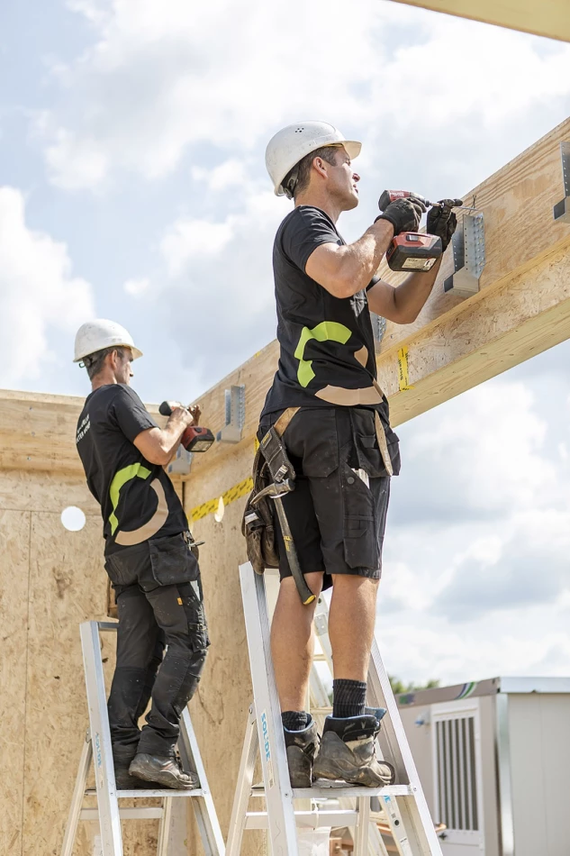 Robuust en flexibel. Deze kenmerken maken van houtskelet een ideale bouwmethode voor uiteenlopende ontwerpen en persoonlijke aanpassingen. Daarenboven bieden de houten frames ook uitstekende thermische isolatie. Met onze unieke dampopen wandopbouw en gelamineerd fineerhout (LVL) maken we dubbel en dik gebruik van de voordelen van hout.